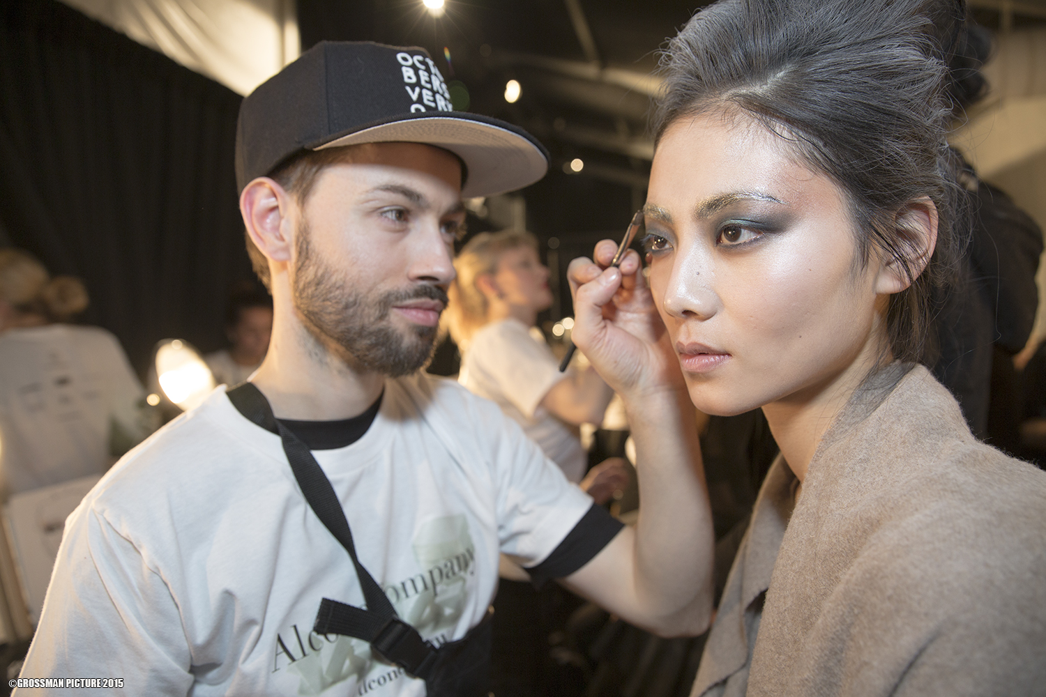 Alex: La texture. On y va plus en transparence, principalement à cause de la perte de vitalité de la peau. Au lieu de masquer, on rebooste l’éclat. On choisit un fond de teint plus doré que rosé. Le rosé absorbe la chaleur de la peau. J’ai remarqué, en photo, que le teint paraît plus fade à ce moment là.